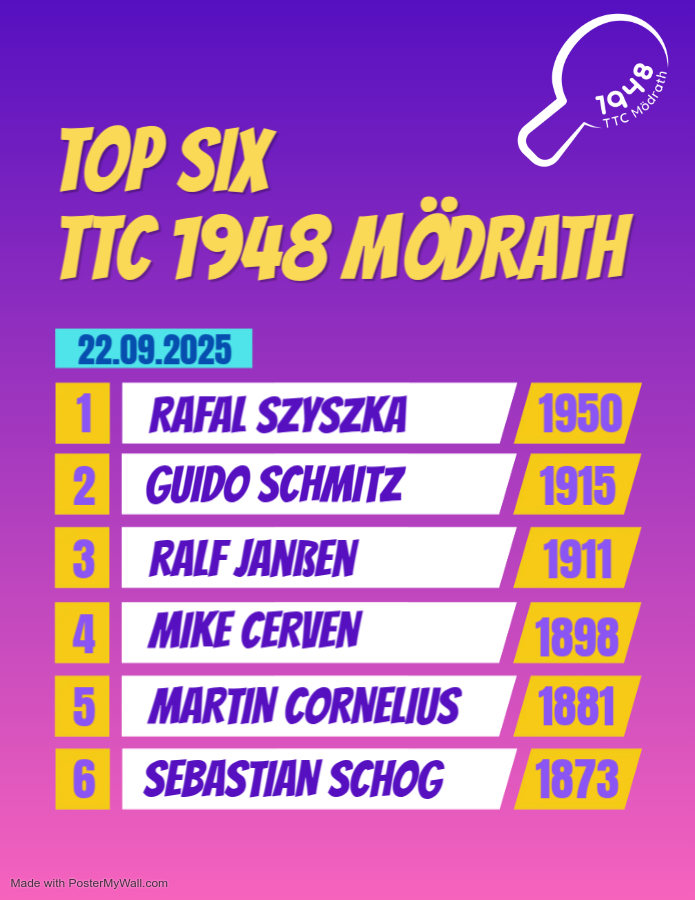Wir sind der TTC 1948 Mödrath – von Hobbyklasse bis Verbandsliga.