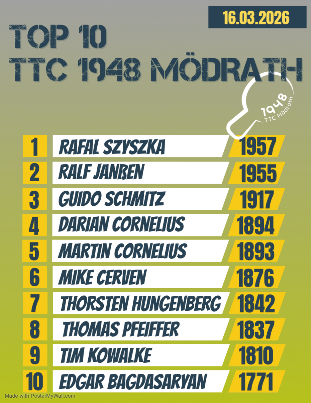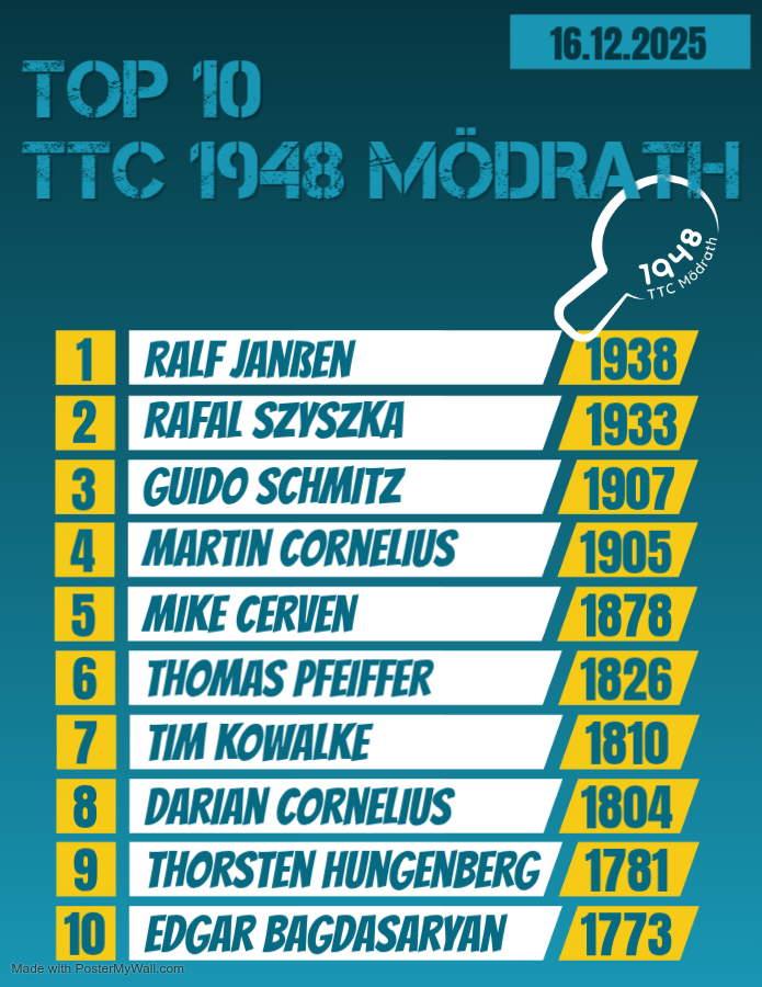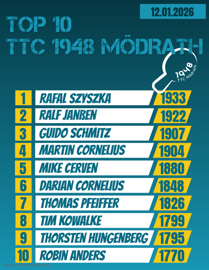 Herzlich willkommen auf der Webseite des TTC 1948 Mödrath